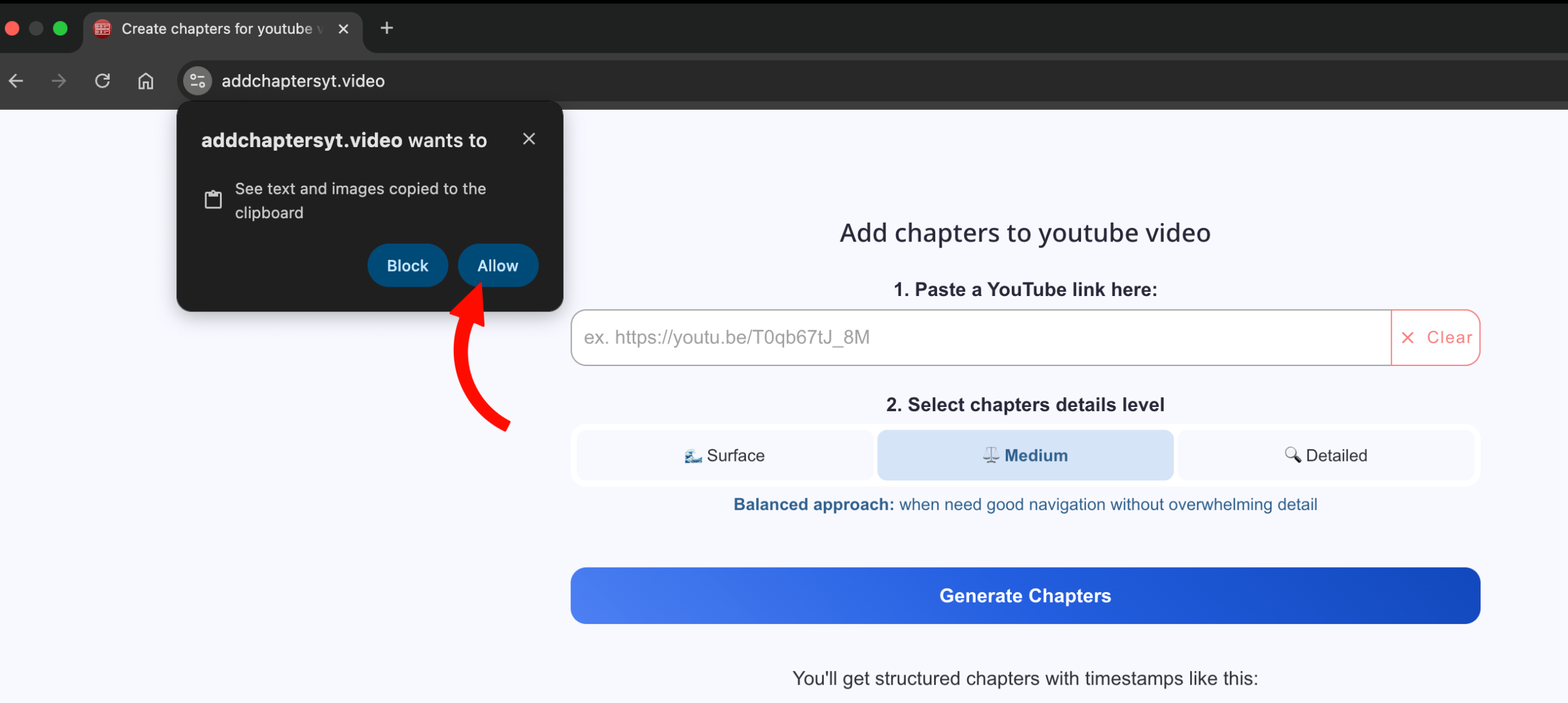 Lors de la première utilisation, lorsque vous cliquez sur le bouton Paste, votre navigateur demandera l’autorisation d’accéder au presse-papiers. Cliquez sur «Autoriser» pour utiliser ce bouton plus facilement à l’avenir (cela n’est nécessaire qu’une seule fois).